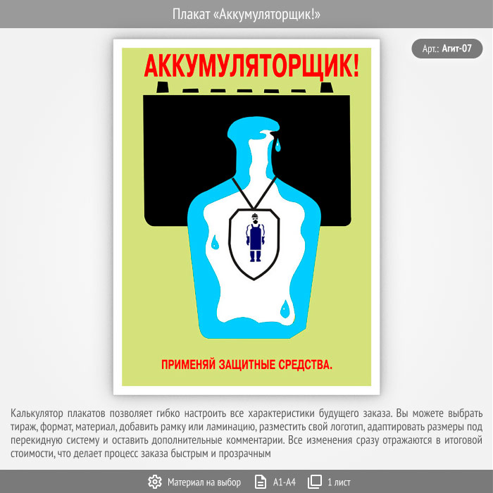 Плакат «Аккумуляторщик!» (Агит-07, 1 лист) в Альметьевске купить
