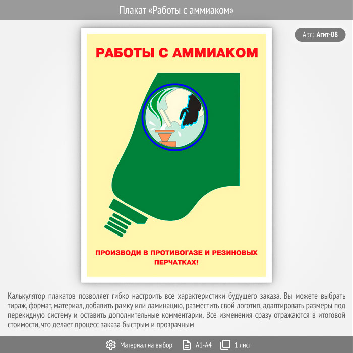 Плакат «Работы с аммиаком» (Агит-08, 1 лист) в Альметьевске купить