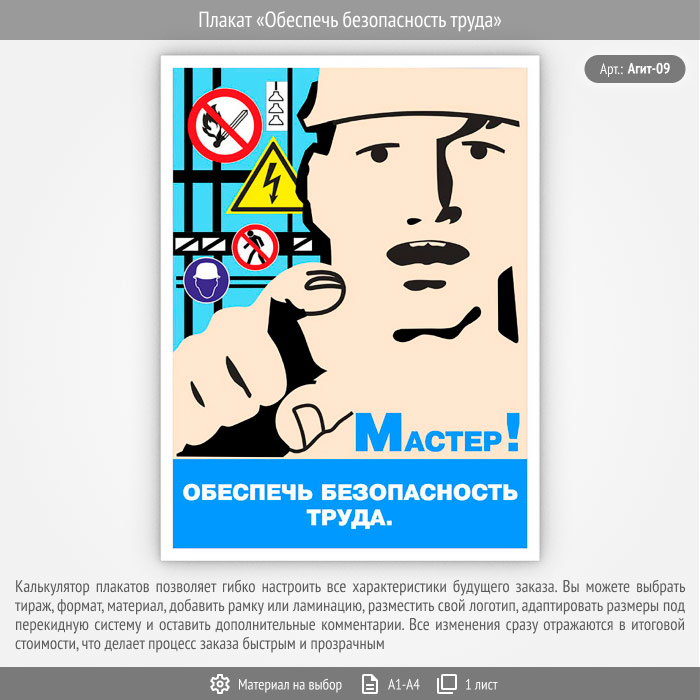Плакат «Обеспечь безопасность труда» (Агит-09, 1 лист) в Альметьевске купить