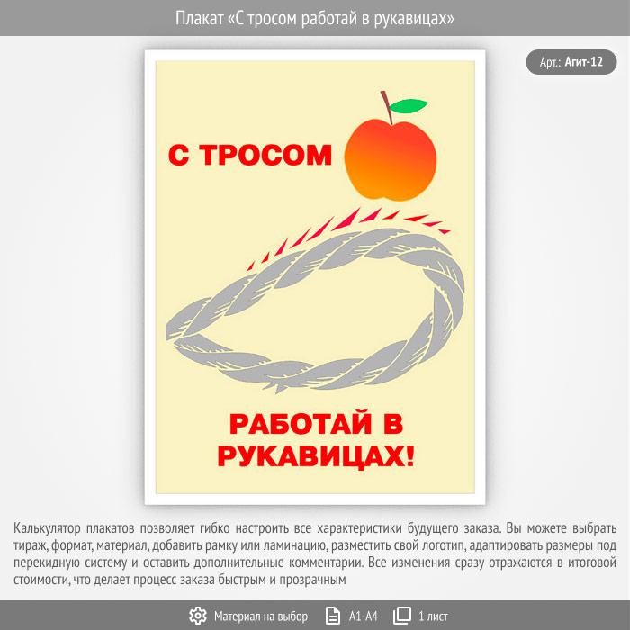 Плакат «С тросом работай в рукавицах» (Агит-12, 1 лист) в Альметьевске купить