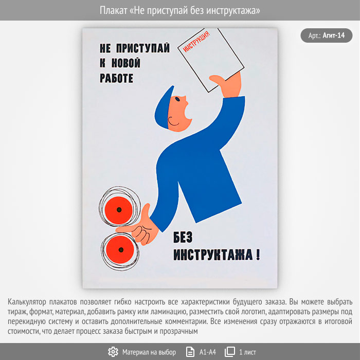 Плакат «Не приступай без инструктажа» (Агит-14, 1 лист) в Альметьевске купить