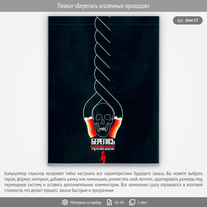 Плакат «Берегись оголенных проводов» (Агит-17, 1 лист) в Альметьевске купить