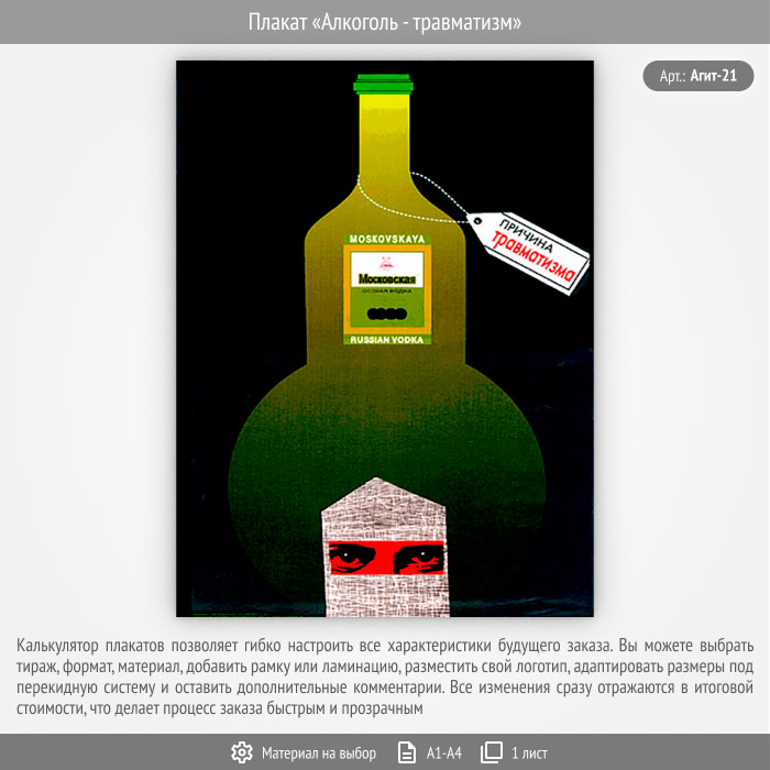Плакат «Алкоголь - травматизм» (Агит-21, 1 лист) в Альметьевске купить