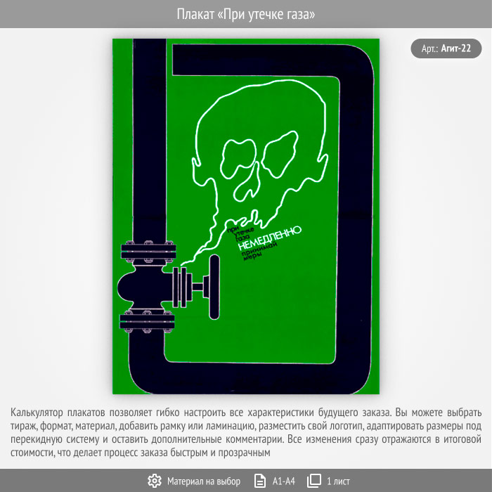 Плакат «При утечке газа» (Агит-22, 1 лист) в Альметьевске купить