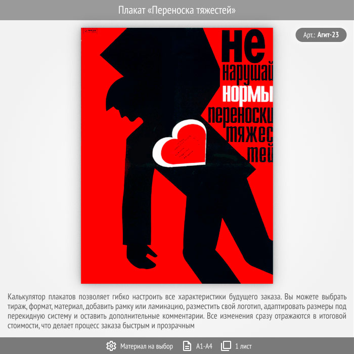 Плакат «Переноска тяжестей» (Агит-23, 1 лист) в Альметьевске купить