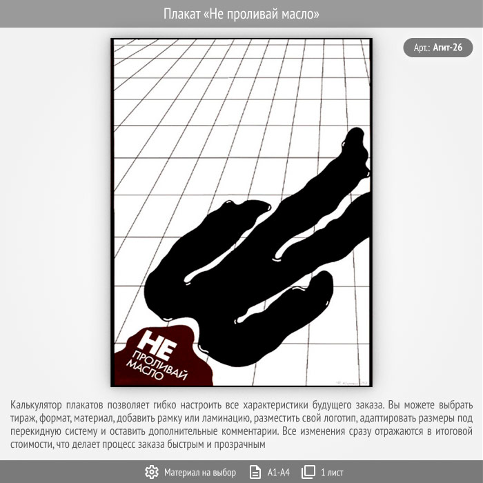 Плакат «Не проливай масло» (Агит-26, 1 лист) в Альметьевске купить