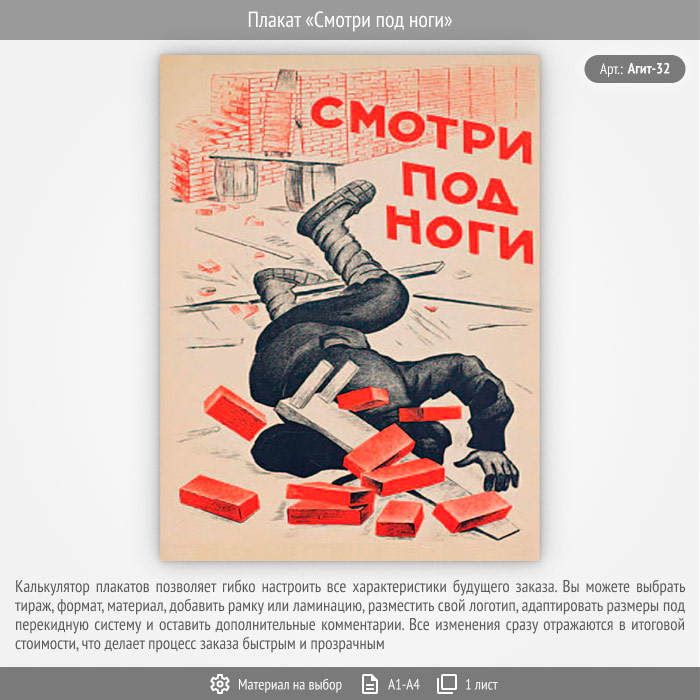 Плакат «Смотри под ноги» (Агит-32, 1 лист) в Альметьевске купить
