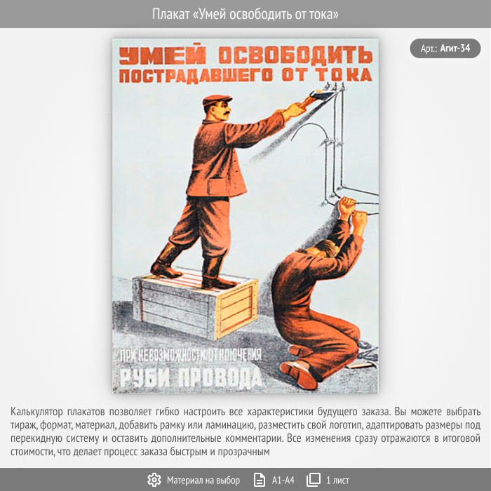 Плакат «Умей освободить от тока» (Агит-34, 1 лист) в Альметьевске купить
