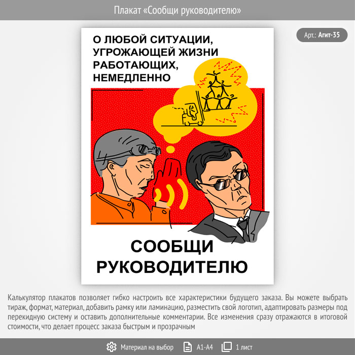 Плакат «Сообщи руководителю» (Агит-35, 1 лист) в Альметьевске купить