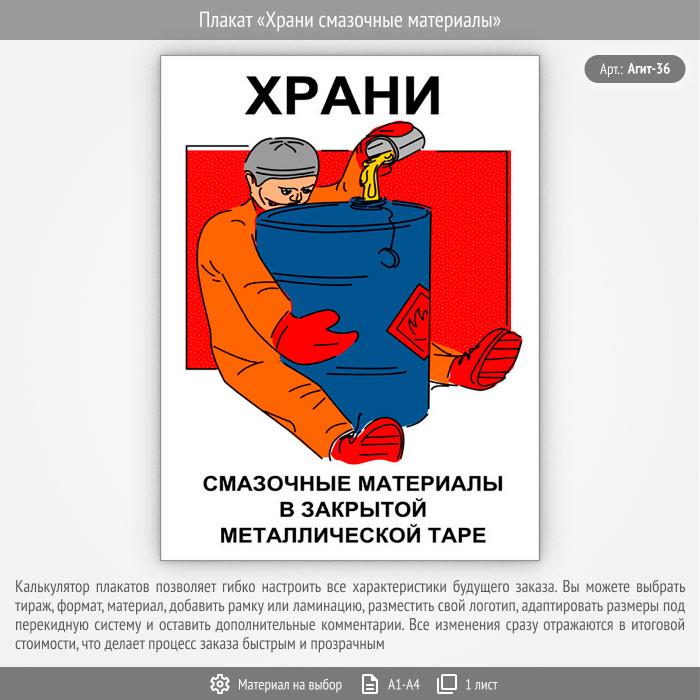 Плакат «Храни смазочные материалы» (Агит-36, 1 лист) в Альметьевске купить