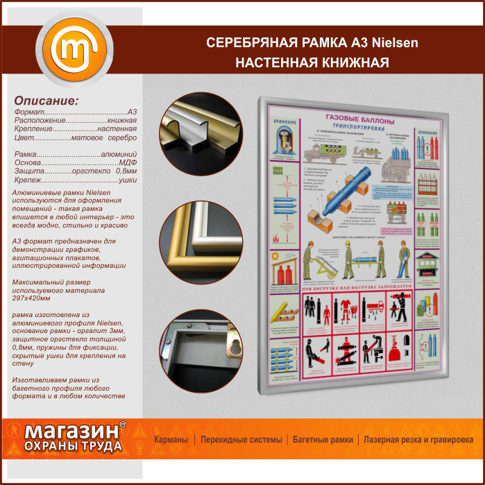 Багетная настенная рамка «Nielsen» А3 формата, книжная, матовое серебро в Альметьевске купить