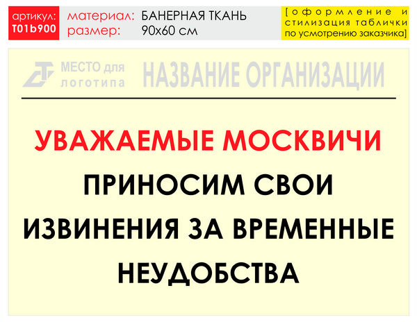Баннер «Извинения», T01 (баннерная ткань, 90х60 см) в Альметьевске купить