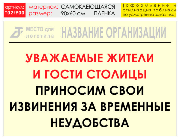 Баннер «Извинения», T02 (самоклеящаяся плёнка, 90х60 см) в Альметьевске купить
