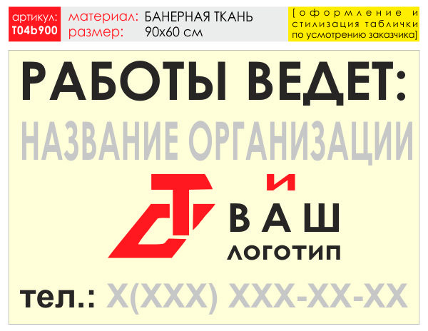 Баннер «Работы ведет», T04 (баннерная ткань, 90х60 см) в Альметьевске купить