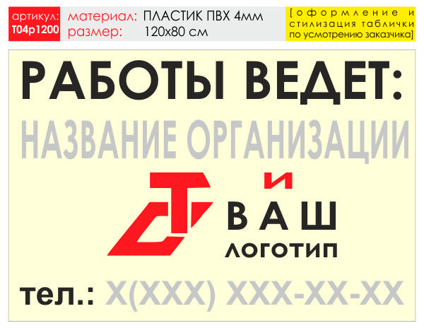 Баннер «Работы ведет», T04 (пластик 4 мм, 120х90 см) в Альметьевске купить