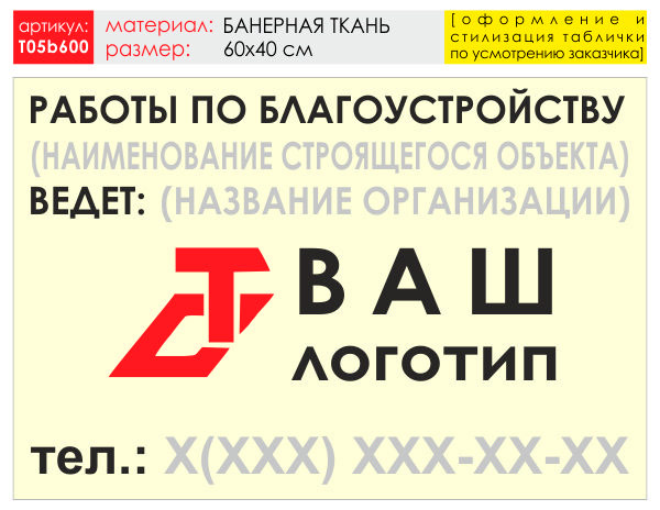 Баннер «Работы по благоустройству», T05 (баннерная ткань, 60х40 см) в Альметьевске купить