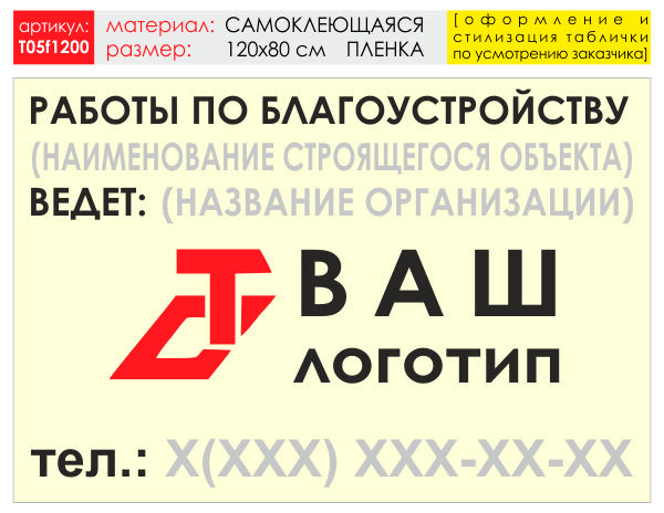 Баннер «Работы по благоустройству», T05 (самоклеящаяся плёнка, 120х90 см) в Альметьевске купить