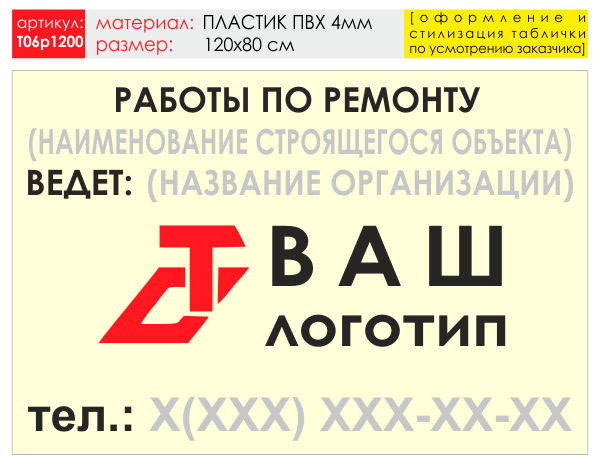 Баннер «Работы по ремонту», T06 (пластик 4 мм, 120х90 см) в Альметьевске купить