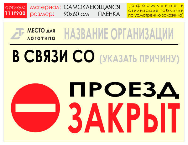 Баннер «Проезд закрыт», T11 (самоклеящаяся плёнка, 90х60 см) в Альметьевске купить