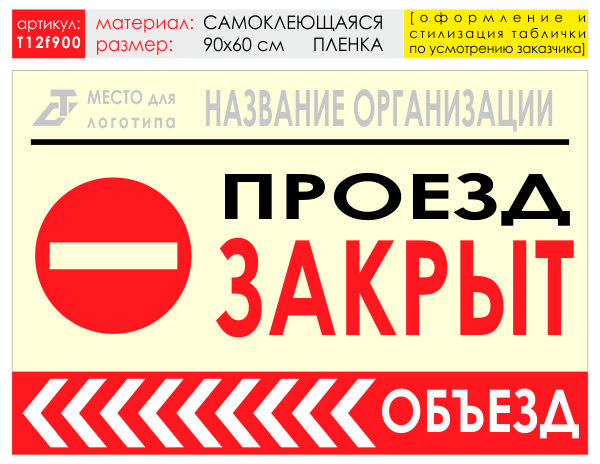Баннер «Объезд слева», T12 (самоклеящаяся плёнка, 90х60 см) в Альметьевске купить