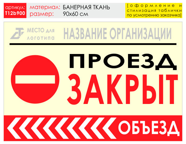 Баннер «Объезд слева», T12 (баннерная ткань, 90х60 см) в Альметьевске купить