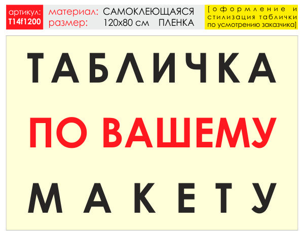 Баннер «Табличка по Вашему макету», T14 (самоклеящаяся плёнка, 120х90 см) в Альметьевске купить
