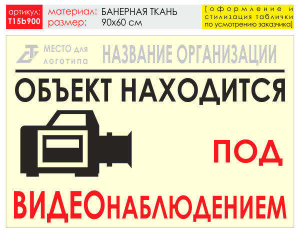 Баннер «Видеонаблюдение», T15 (баннерная ткань, 90х60 см) в Альметьевске купить