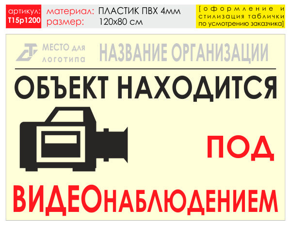 Баннер «Видеонаблюдение», T15 (пластик 4 мм, 120х90 см) в Альметьевске купить