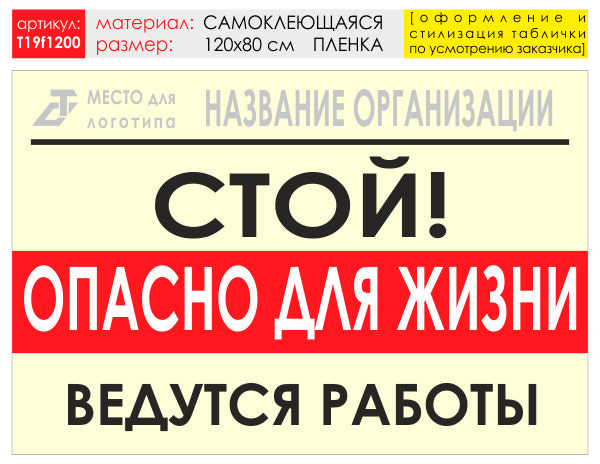 Баннер «Опасно для жизни», T19 (самоклеящаяся плёнка, 120х90 см) в Альметьевске купить