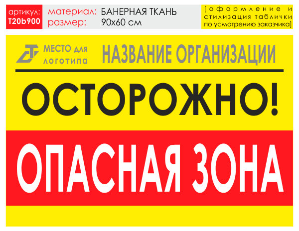Баннер «Опасная зона», T20 (баннерная ткань, 90х60 см) в Альметьевске купить