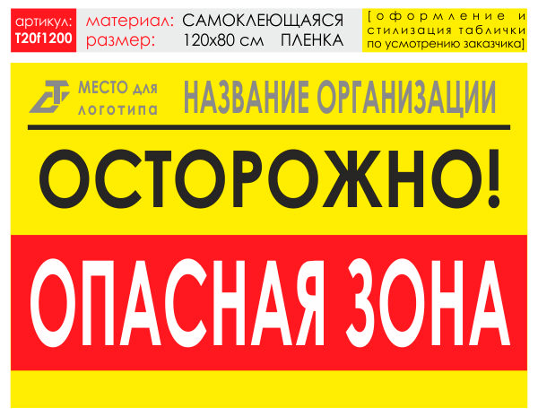 Баннер «Опасная зона», T20 (самоклеящаяся плёнка, 120х90 см) в Альметьевске купить