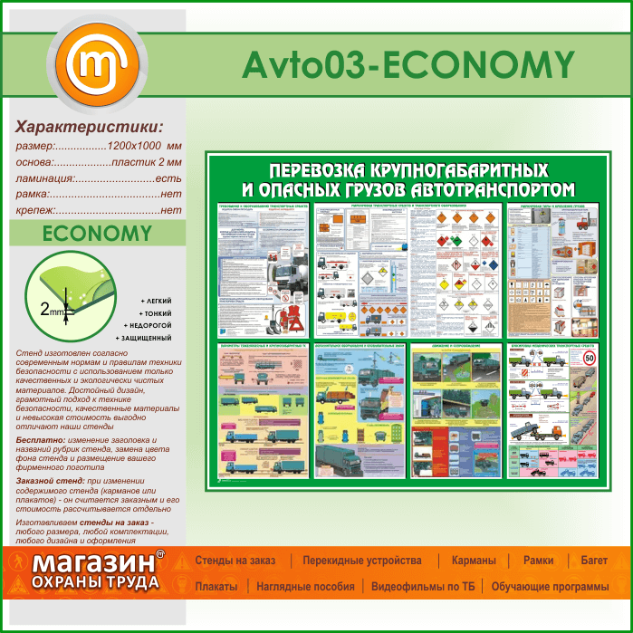 Стенд «Перевозка крупногабаритных и опасных грузов автотранспортом» (AV-03-ECONOMY) в Альметьевске купить