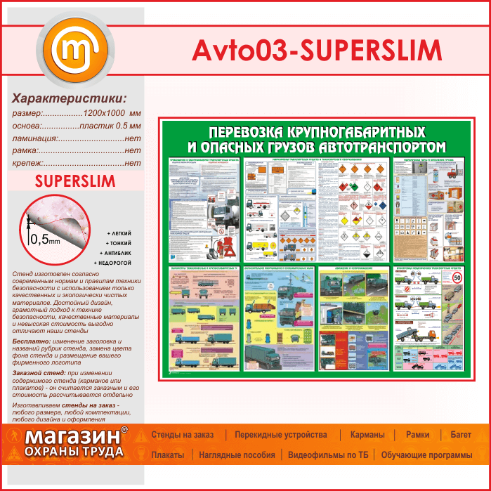 Стенд «Перевозка крупногабаритных и опасных грузов автотранспортом» (AV-03-SUPERSLIM) в Альметьевске купить