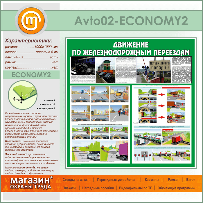 Стенд «Движение по железнодорожным переездам» (AV-02-ECONOMY2) в Альметьевске купить