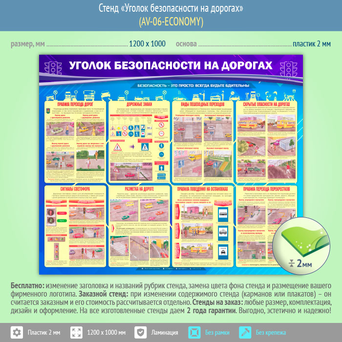 Стенд «Уголок безопасности на дорогах» (AV-06-ECONOMY) в Альметьевске купить