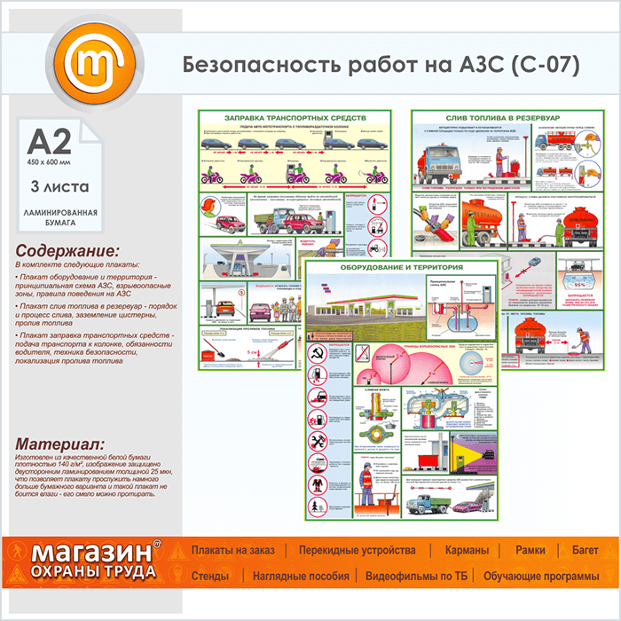 Плакаты «Безопасность работ на АЗС» (С-07, ламинированная бумага, А2, 3 листа) в Альметьевске купить