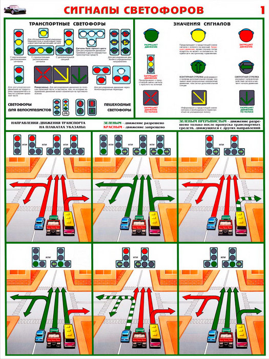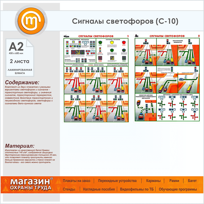 Плакаты «Сигналы светофоров» (С-10, ламинированная бумага, А2, 2 листа) в Альметьевске купить