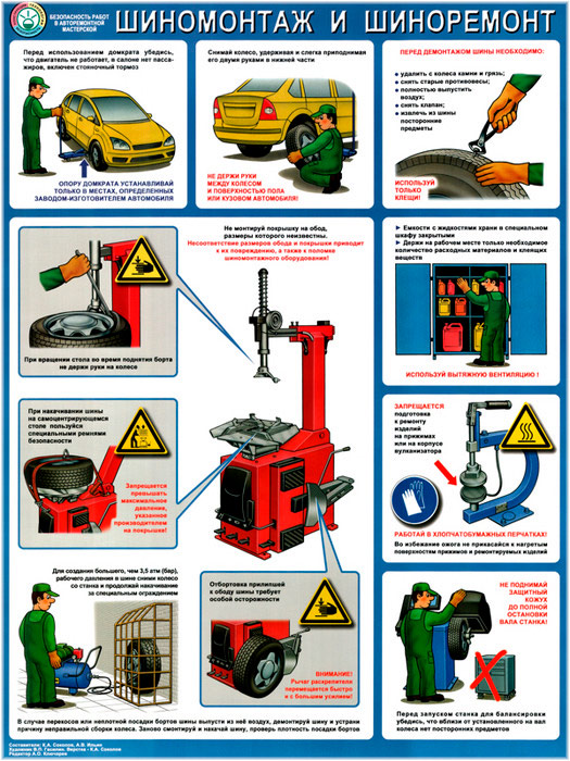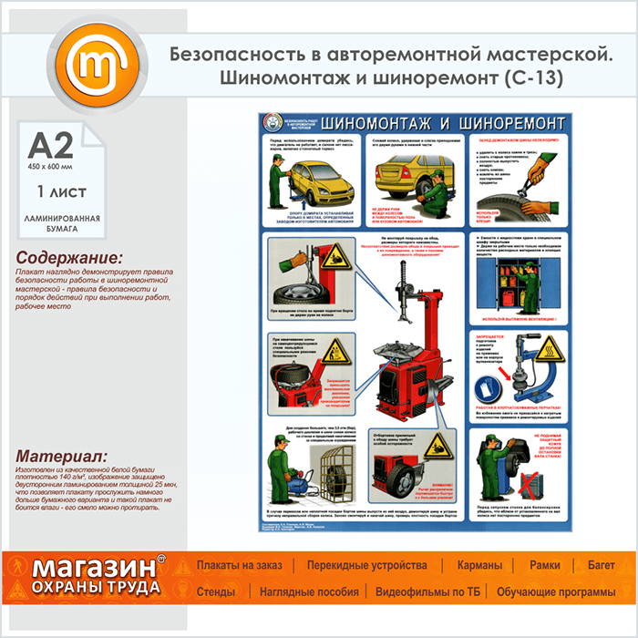 Плакат «Безопасность в авторемонтной мастерской. Шиномонтаж и шиноремонт» (С-13, ламинированная бумага, А2, 1 лист) в Альметьевске купить