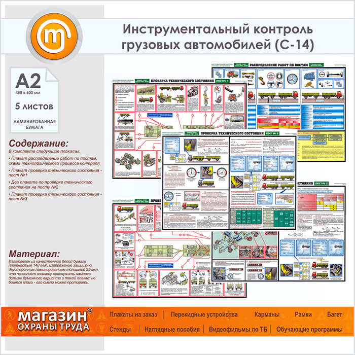 Плакаты «Инструментальный контроль грузовых автомобилей» (С-14, ламинированная бумага, А2, 5 листов) в Альметьевске купить