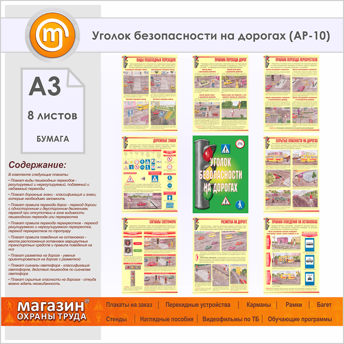Плакаты «Уголок безопасности на дорогах» (АР-10, бумага, А3, 8 листов) в Альметьевске купить