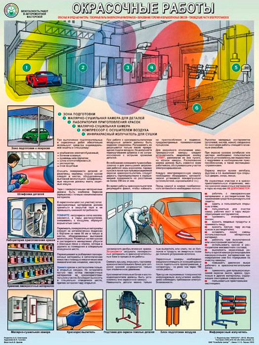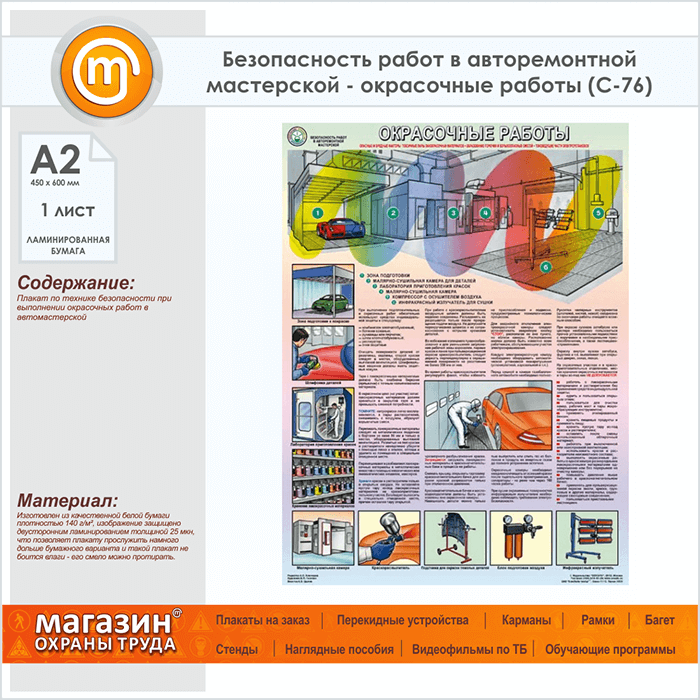 Плакат «Безопасность работ в авторемонтной мастерской - окрасочные работы» (С-76, ламинированная бумага, А2, 1 лист) в Альметьевске купить