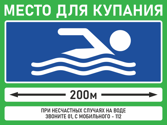 Знак «Место для купания», БВ-03 (пластик 2 мм, 600х400 мм) в Альметьевске купить