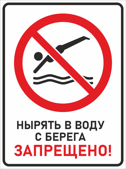 Знак «Нырять в воду с берега запрещено!», БВ-16 (пластик 4 мм, 300х400 мм) в Альметьевске купить