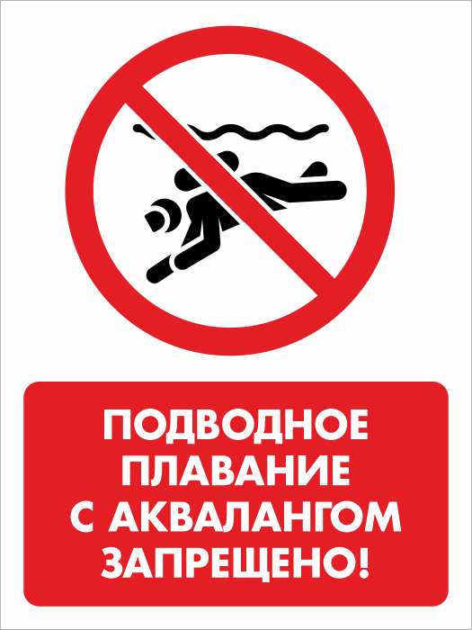 Знак «Подводное плавание с аквалангом запрещено!», БВ-38 (пластик 4 мм, 300х400 мм) в Альметьевске купить