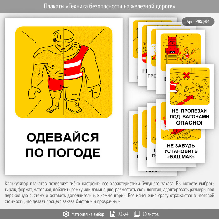 Плакаты «Техника безопасности на железной дороге» (РЖД-04, 10 листов) в Альметьевске купить