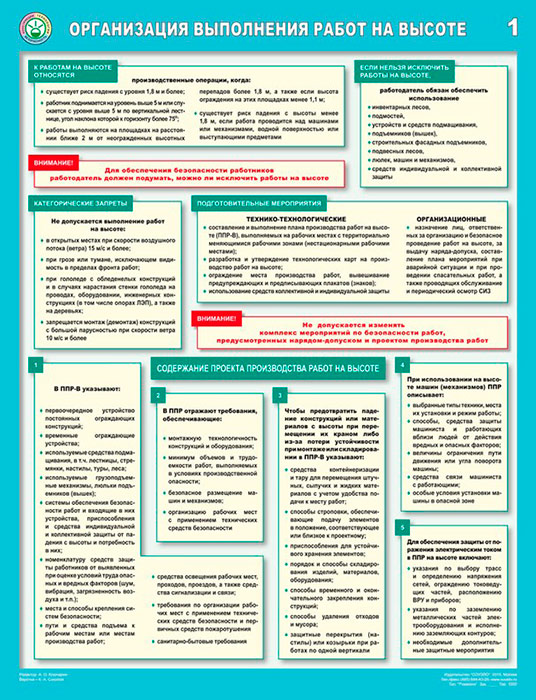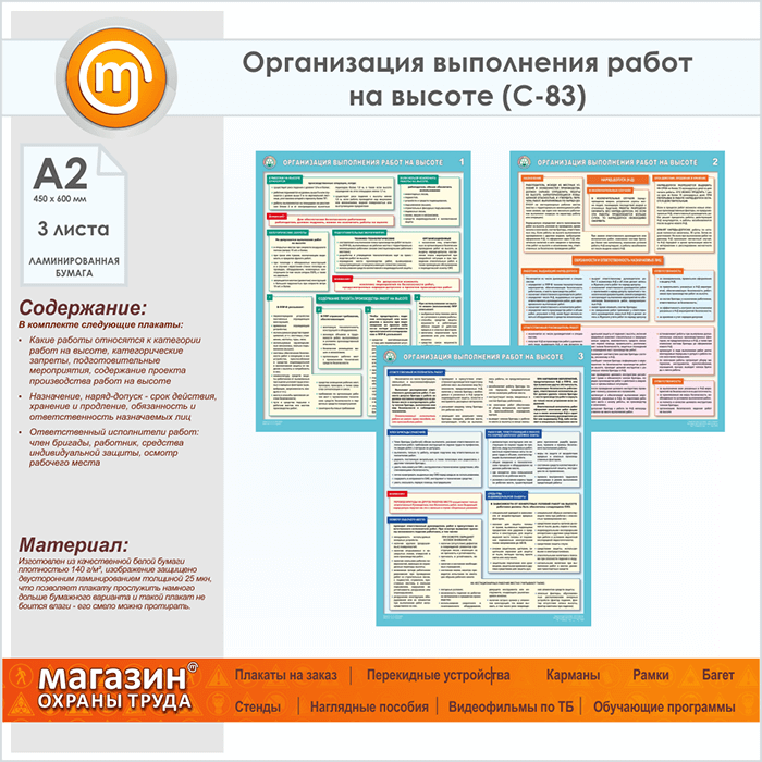 Плакаты «Организация выполнения работ на высоте» (С-83, ламинированная бумага, А2, 3 листа) в Альметьевске купить
