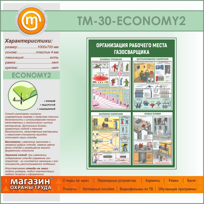 Стенд «Организация рабочего места газосварщика» (TM-30-ECONOMY2) в Альметьевске купить