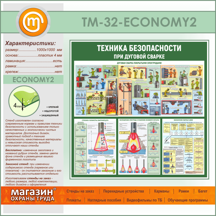 Стенд «Техника безопасности при дуговой сварке» (TM-32-ECONOMY2) в Альметьевске купить