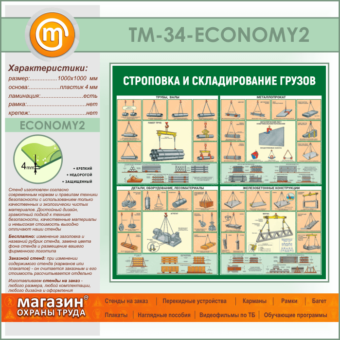 Стенд «Строповка и складирование грузов» (TM-34-ECONOMY2) в Альметьевске купить
