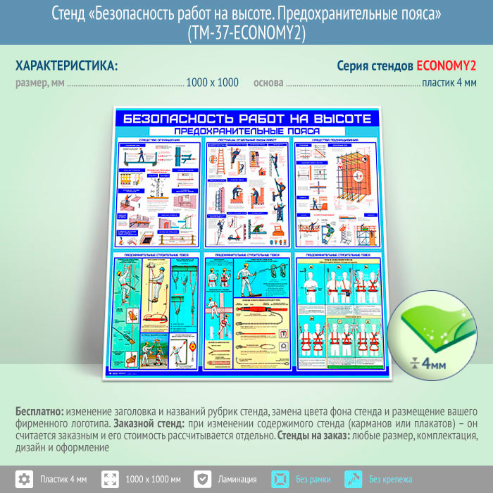 Стенд «Безопасность работ на высоте. Предохранительные пояса» (TM-37-ECONOMY2) в Альметьевске купить